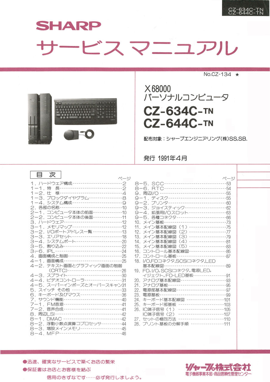 「X68000」(CZ-634C/CZ-644C)の「サービスマニュアル」の無料配信を開始した。