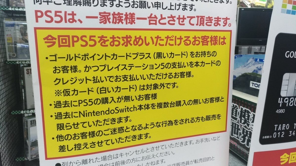 こうしたことからヨドバシでは、今回から販売方法を変更。購入条件に、“一家族一台まで”、“過去にPS5の購入履歴のない方”に加えて、“ゴールドポイントカードプラス決済が可能な方”を加えた。ゴールドポイントカードプラスは、クレジットカード機能が付いたヨドバシゴールドポイントカードで、クレカ決済限定とすることで、列に並んでバイト代を得る“並び屋”を駆逐し、本当に欲しいゲームファンに行き渡らせたい考えだ。