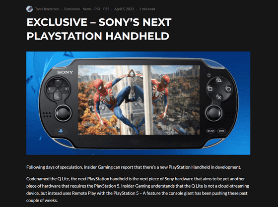 Insider Gamingの米国時間4月5日の記事によると、この新しい携帯型デバイスは、専用ゲームが開発されるような独立したプラットフォームではなく、「PS5」のゲームをリモートプレイするためのものになるという。