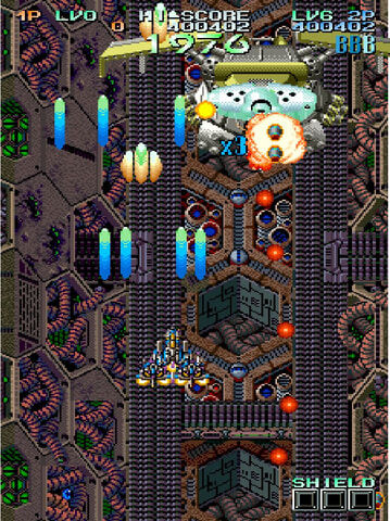 「ガンネイル」は、1993年にNMKから発売されたシューティングゲーム。シールドの残数を減らして死に近づくほど得られるスコアが増えていくという「マルチプルシールドシステム」が搭載されている。
