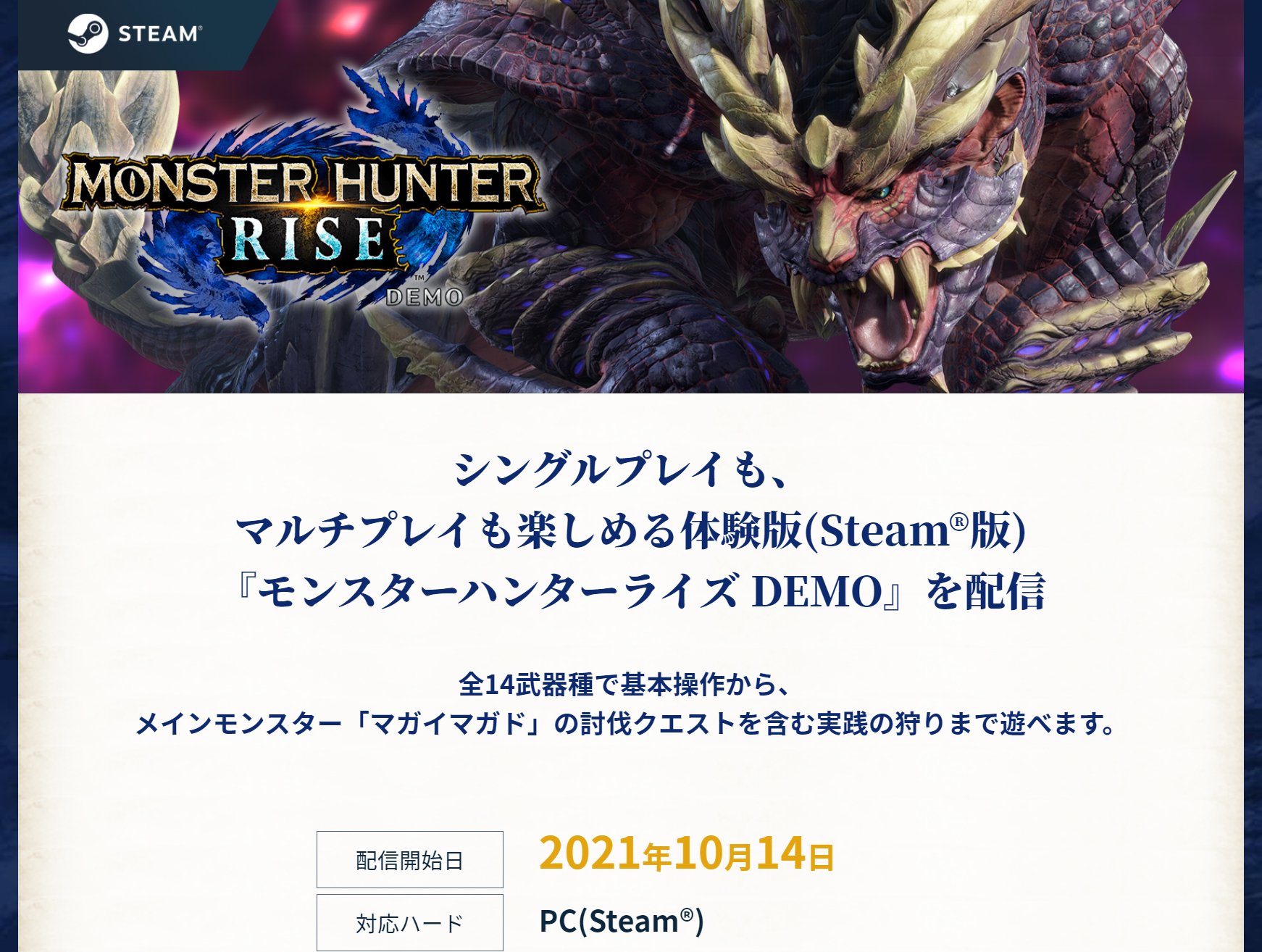 カプコンは10月12日、Nintendo Switch/PC(Steam)用ハンティングアクション「モンスターハンターライズ」について、ダウンロード版の価格改定を実施した。